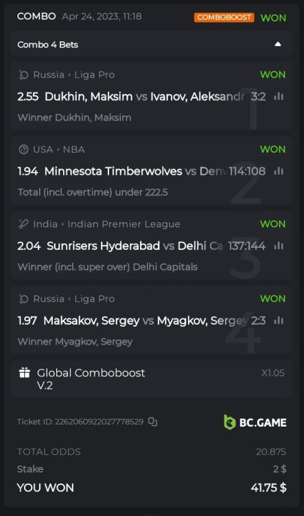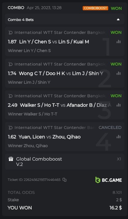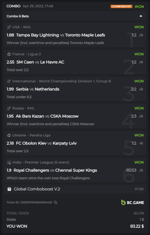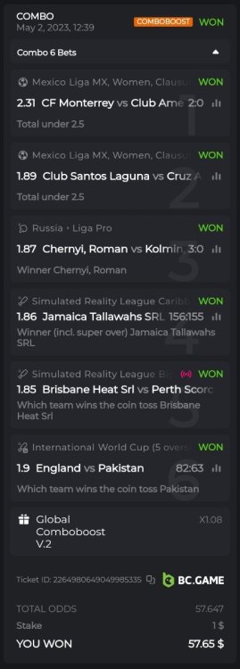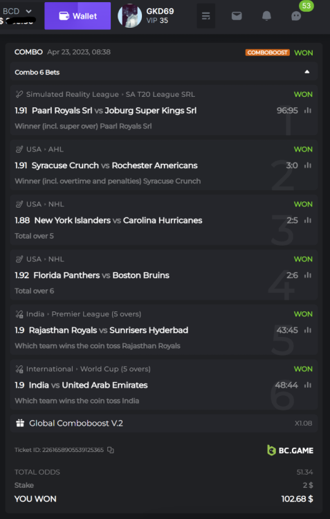 16. Hey @BCGame_Ninja, having read this I was wondering if we are allowed to make parlay bets other than just "Winner (Incl. super over)" markets for each game. I understand that we can't bet on 2 markets of the same game, but can we bet on "overs 0 to 10" on one game and "total run outs" of another game for example? Orrr did you mean you can't have multiple parlay bet wins that have the same game in either one of the parlay bets - that case only one parlay bet will be counted?