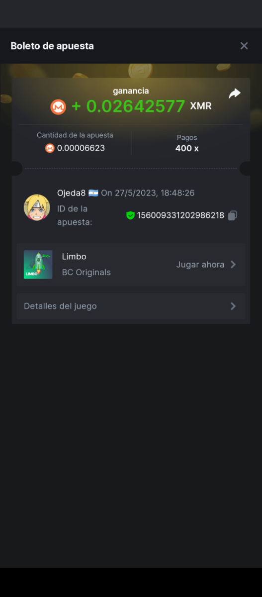 Maksypro Posted May 27, 2023 Share Posted May 27, 2023 Read Carefully Before Start To Hunt Daily Challenges #248 LIMBO ย Hunt : Win the highest pay out Min Payout requirement 100x Min Level 4 ๏ธDuration Starting : Now End time : 23.59 UTC Time How to Join? Make screenshot + paste your bet link + UID or Profile link Any coin, with min bet 0.01 USD is allowed (jb/bb/bcl not allowed) Reward Prizes 1st Place.....$7 BCD 2nd Place.....$5 BCD 3rd Place.....$4 BCD 4th Place.....$3 BCD 5th Place.....$2 BCD ๐ต Winners will be announcing next day after Roll Point! 1 Link to comment Share on other sites More sharing options...